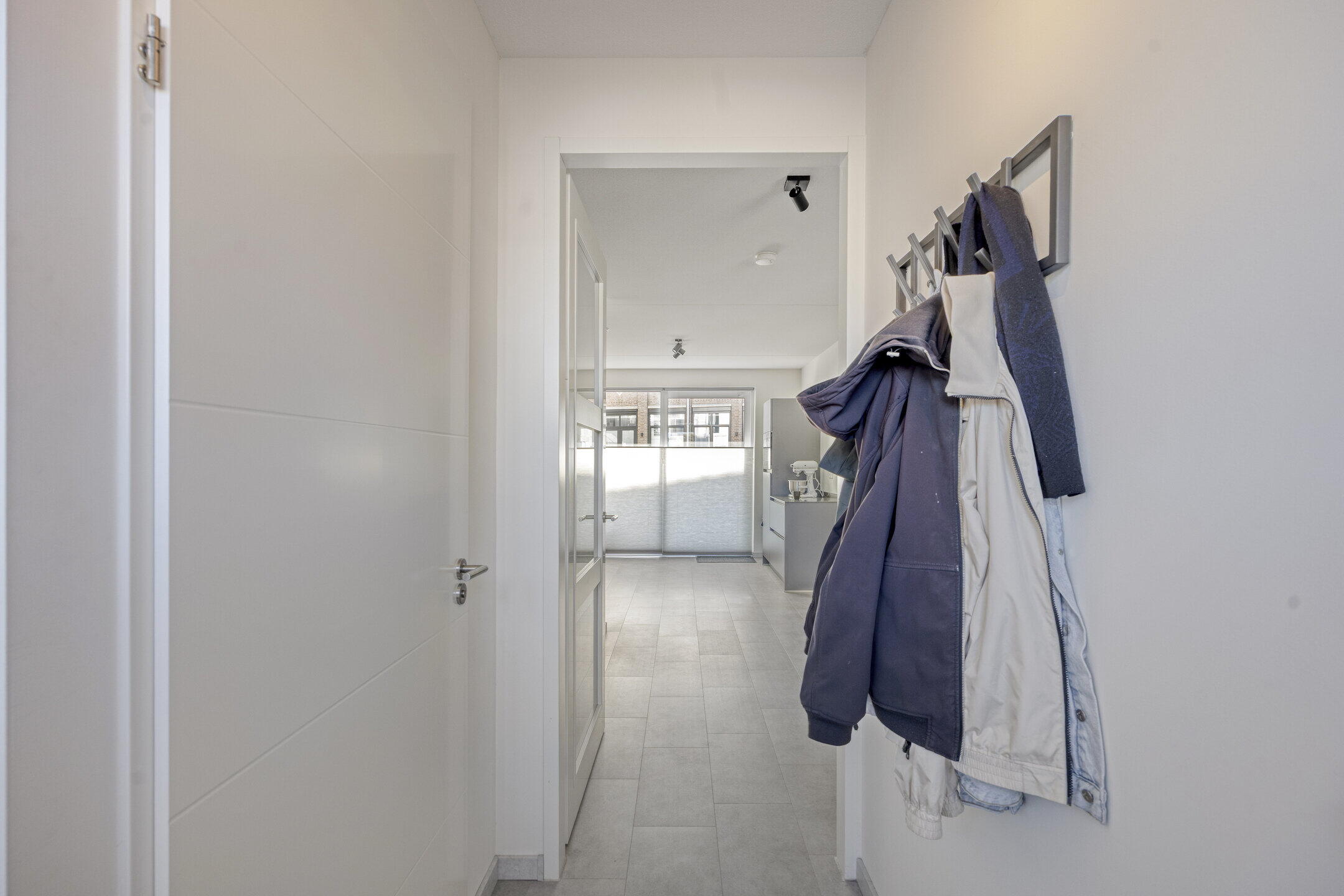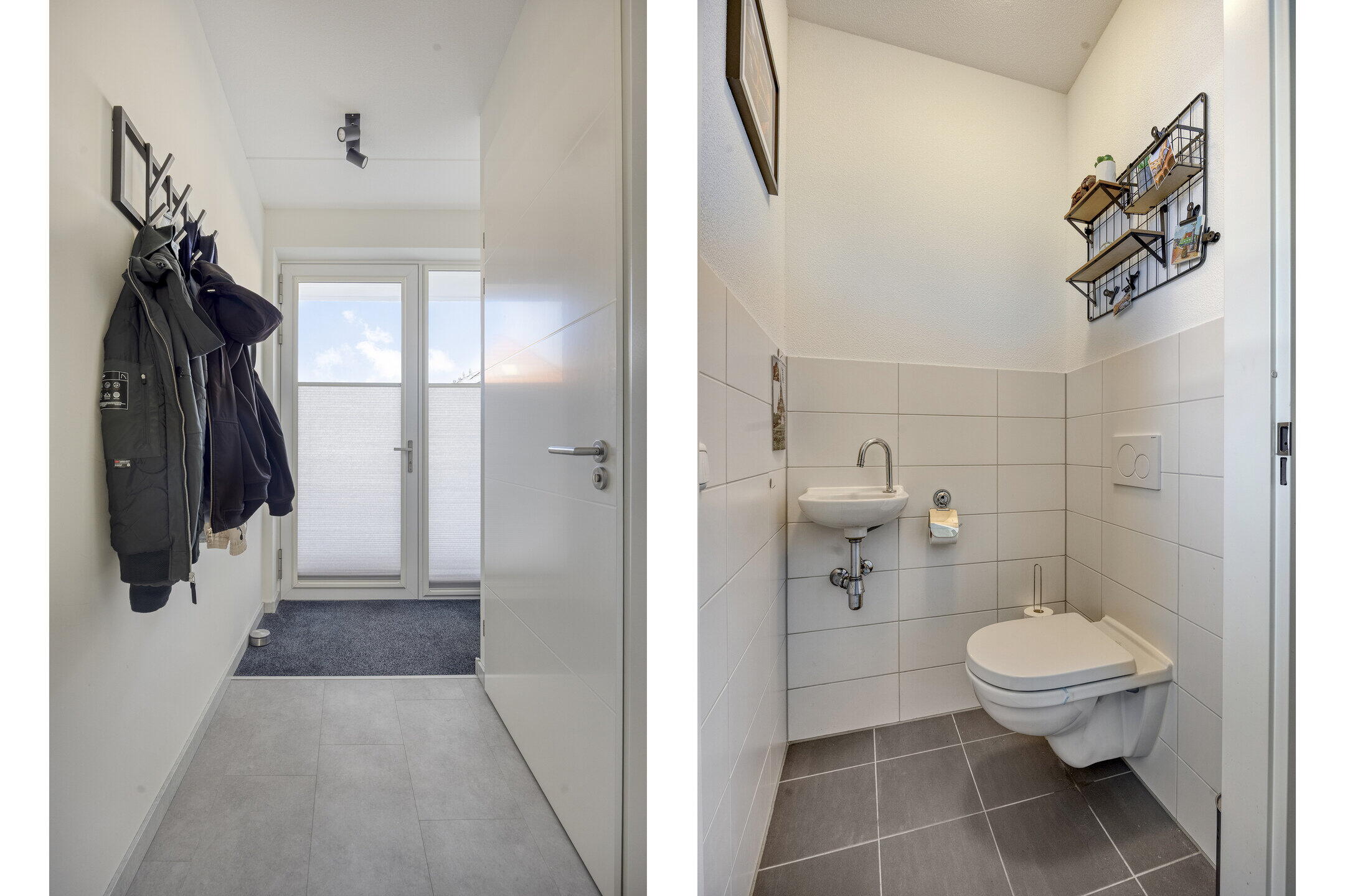 Via de ruime en lichte hal kom je binnen in de woning. Hier vind je een modern afgewerkt toilet en de toegang tot de woonkamer. De entree geeft direct een verzorgde en uitnodigende eerste indruk.
