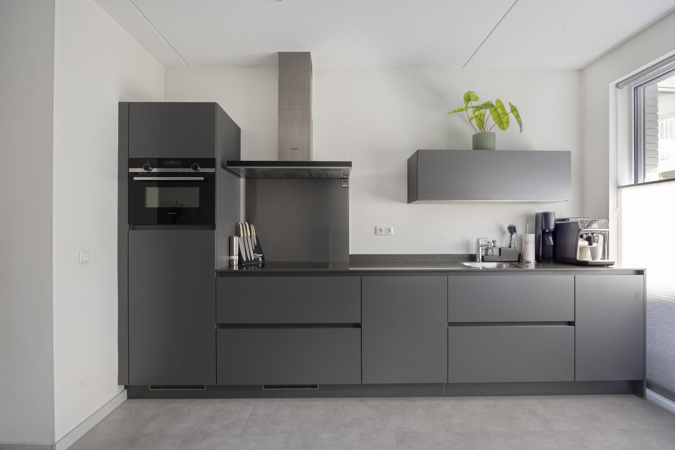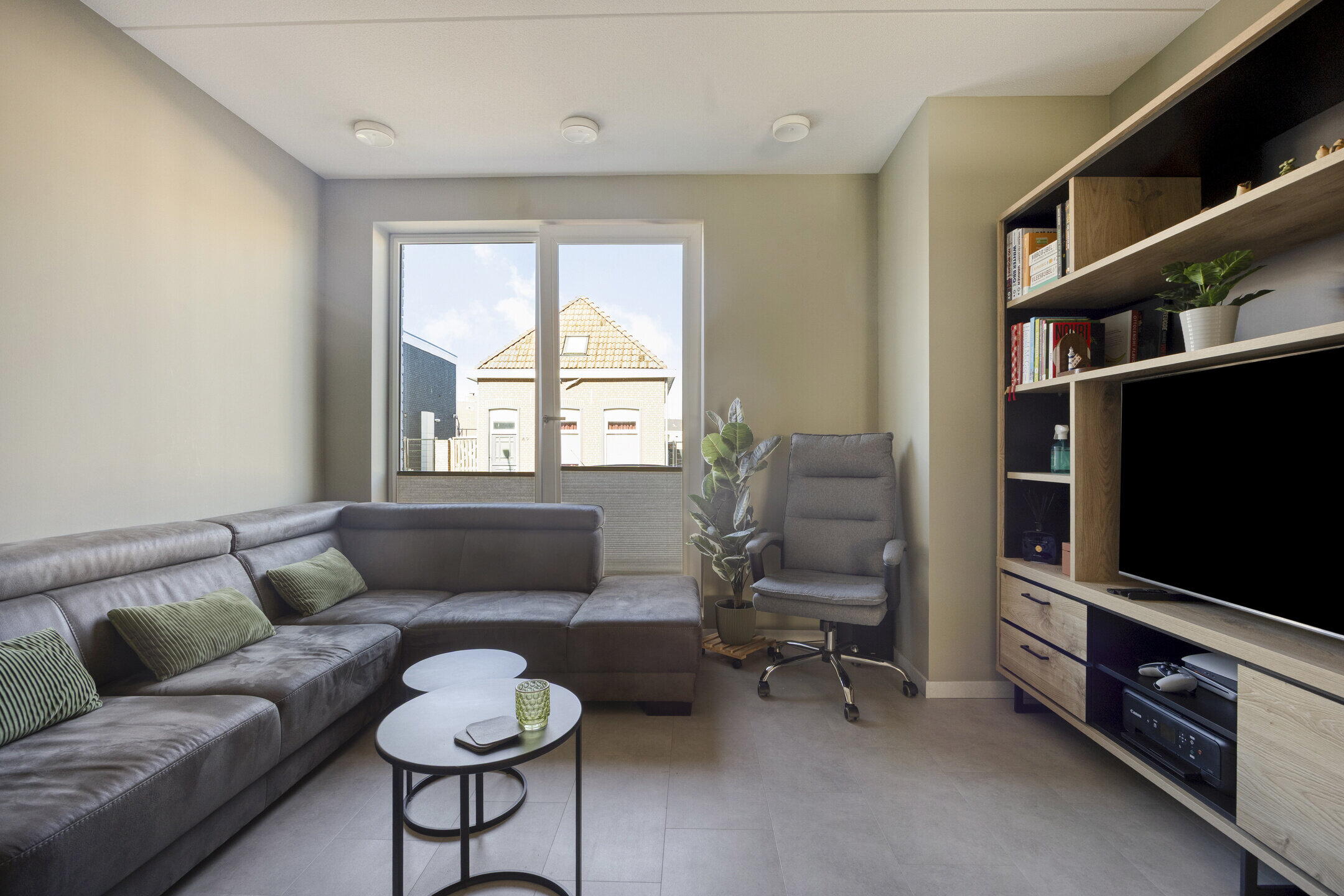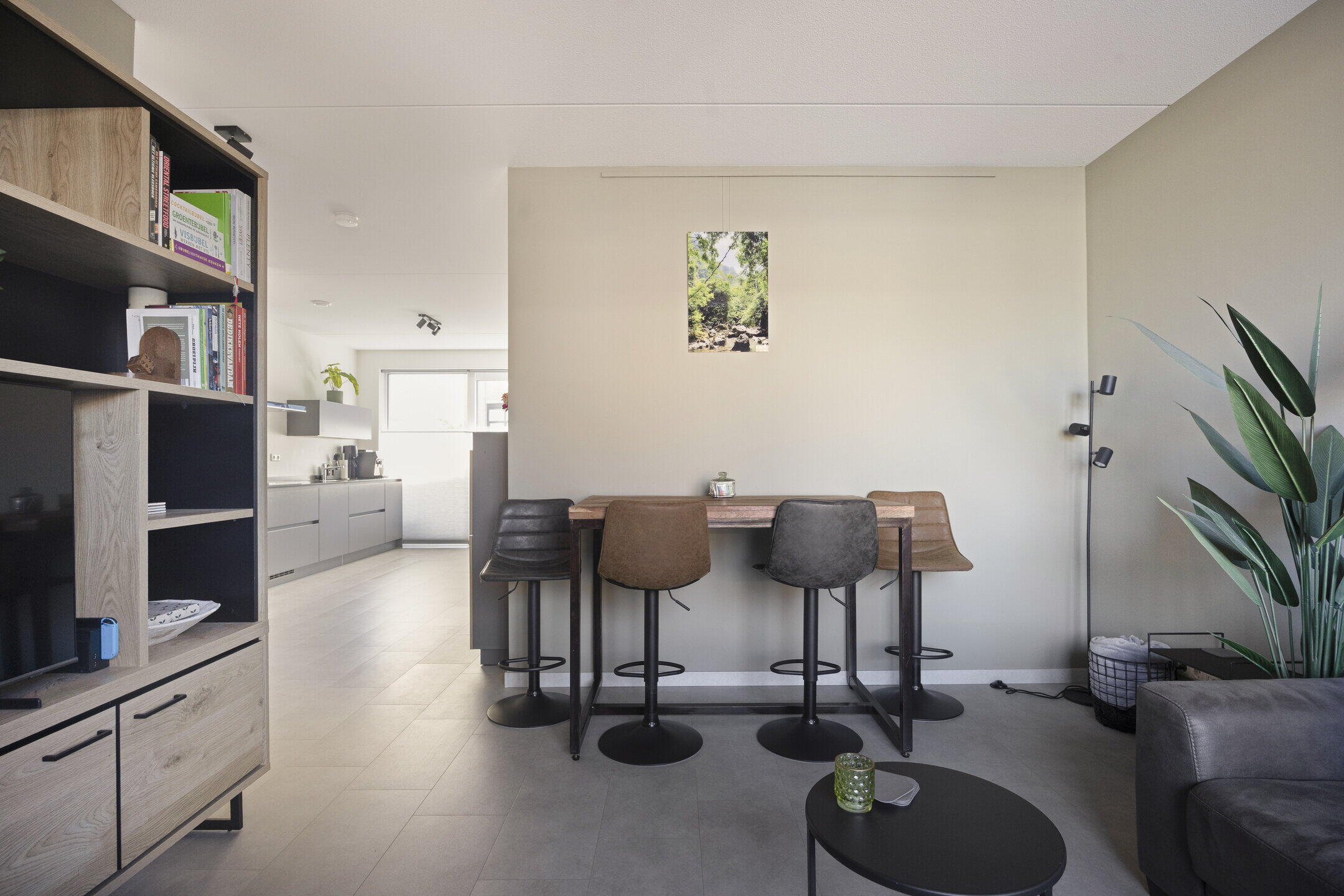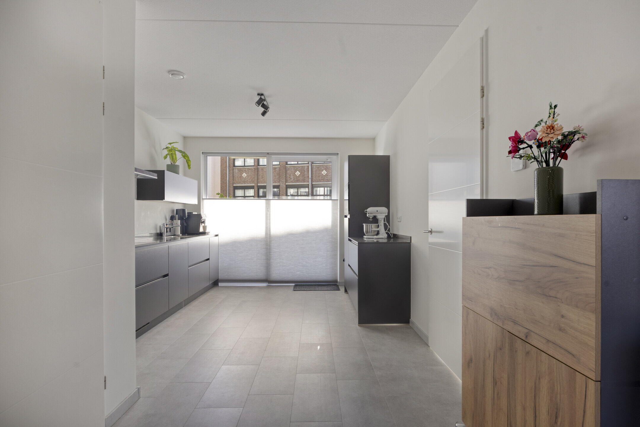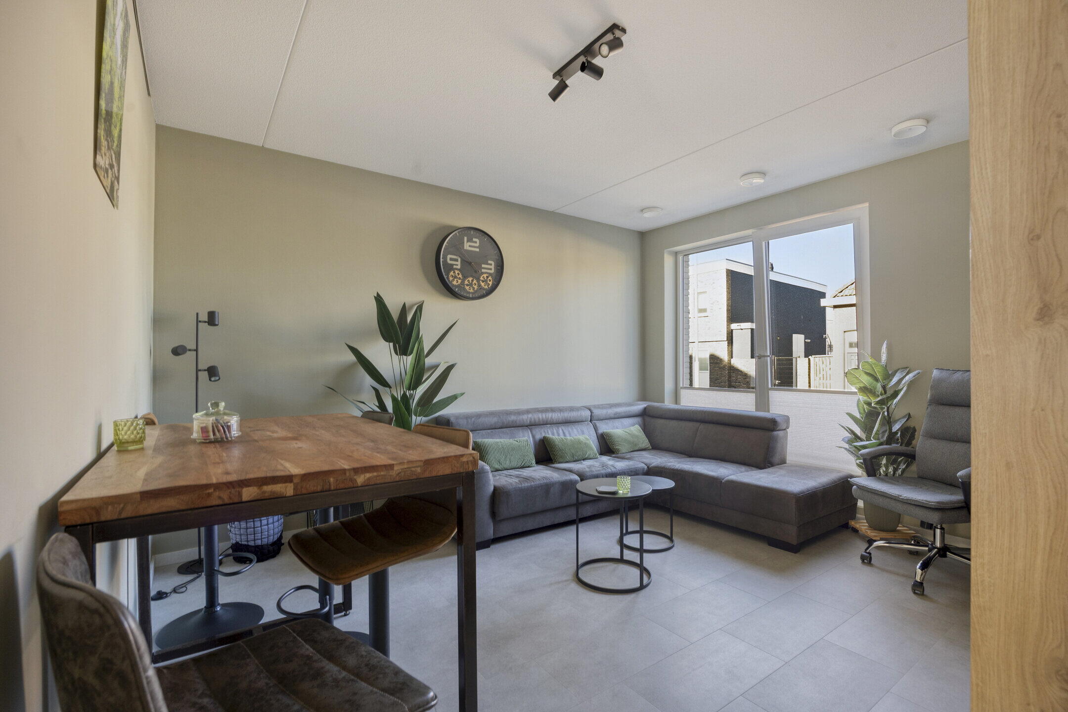 De woonkamer is heerlijk licht dankzij de lichte vloer en wanden, wat zorgt voor een frisse en ruimtelijke uitstraling. Er is voldoende plek voor een comfortabele hoekbank en een gezellige eettafel. Daarnaast beschikt het appartement over een praktische berging met aansluiting voor wasmachine en droger.